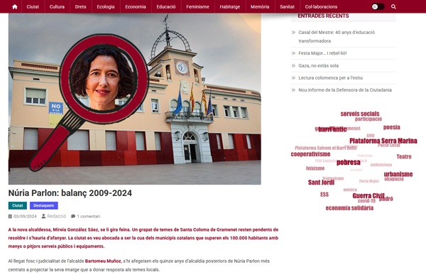 Segurament, si hem de destacar un canvi que s’hagi produït a la ciutat en aquests 5 anys, gairebé sense cap dubte seria el canvi a l’Alcaldia. Ara fa poc més d’un any, Núria Parlon era nomenada consellera d’Interior del nou govern de la Generalitat, per la qual cosa deixava l’Alcaldia de Santa Coloma que havia exercit des de 2009, quan va substituir el corrupte Bartu Muñoz —l’article que vam escriure fent balanç del seus anys com a alcaldessa és dels més llegits de la revista—. Amb ella se’n va emportar un gruix significatiu de l’equip de govern, que, per tant, va haver de patir una notòria reestructuració, començant pel nomenament com a nova alcaldessa de Mireia González, regidora d’Educació, Infància i Joventut amb Parlon.