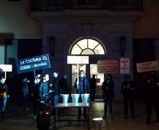 Coincidint amb l’entrada en vigor del toc de queda es van convocar concentracions a diverses localitats catalanes, també a la plaça de la Vila de la nostra ciutat, per reclamar que es combati l’epidèmia amb mesures socials.