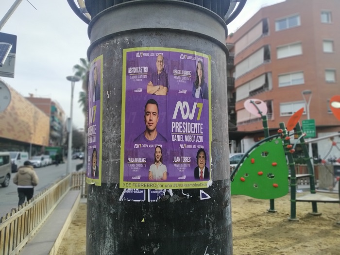Als carrers de Santa Coloma de Gramenet també ha arribat la disputada campanya electoral actual per a la presidència de l’Equador, de la qual se celebrarà la segona volta a començaments d’abril. Imatges: Redacció.