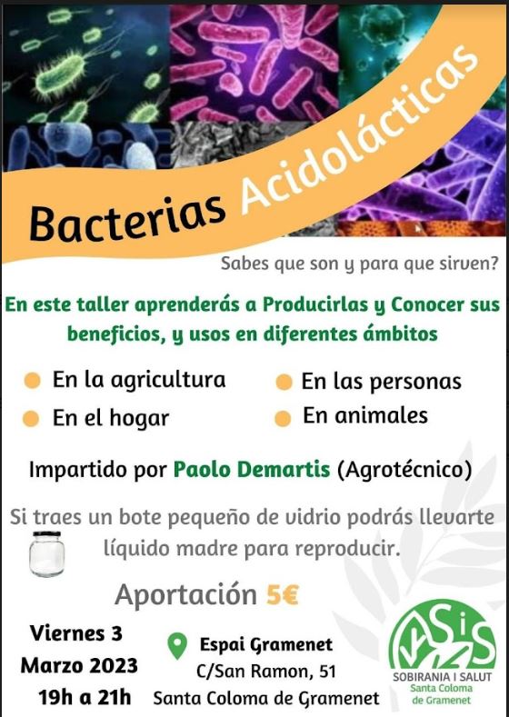 Hi aprendràs a produir aquests bacteris i en coneixeràs els beneficis per a les persones i els altres animals, la llar i l’agricultura. Porta-hi un pot de vidre. Suport: 5 euros.
