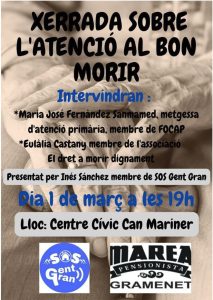 Xerrada: L’atenció al bon morir, amb María José Fernández, metgessa, i Eulàlia Castany, de l’Associació El dret a morir dignament.