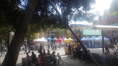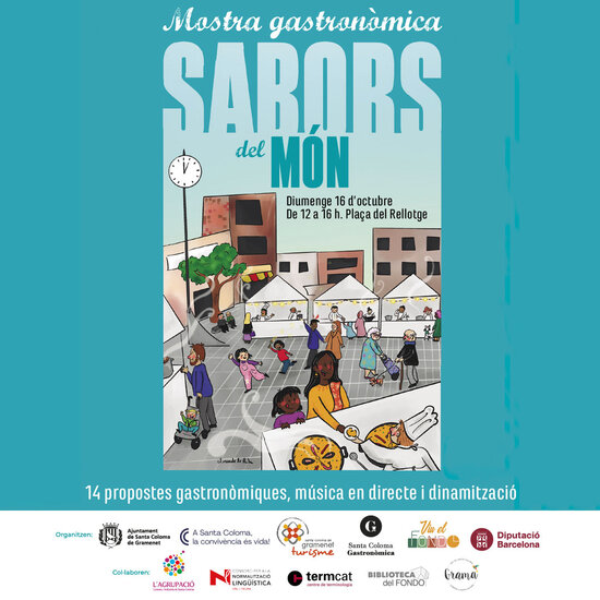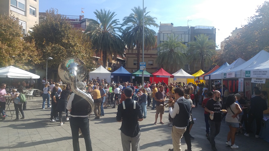 La plaça Rellotge bullia tot el dia, amb tallers i demostracions, jocs lingüístic i gastronomia, molta gastronomia, d’arreu, com bé diu el nom de la festa. No només hi havia les carpes dels expositors gastronòmics, al centre de la plaça s’instal·laven taules sota cobert on podies dinar, berenar i sopar. Era una de les millors diades que se celebraven al Santa Coloma, amb la particularitat afegida que té lloc fora de “l’omnipresent” centre.