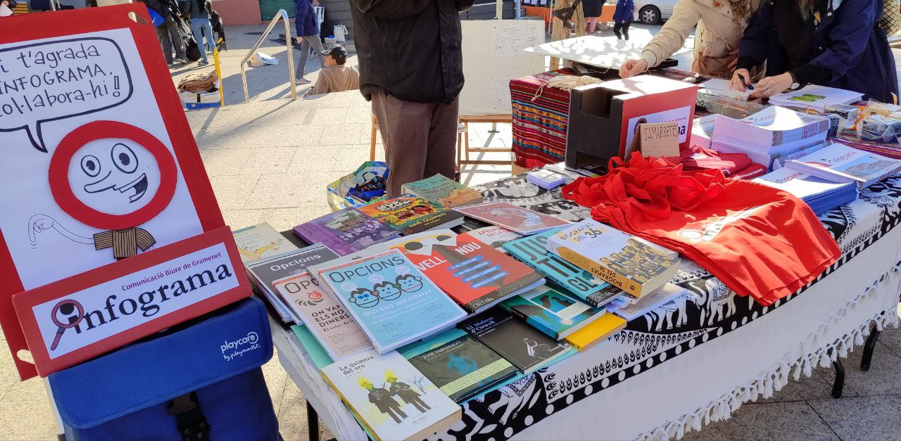 Com cada any, l’Infograma vam tornar a ser a la plaça de la Vila per Sant Jordi. I vam estar repartint a tort i a dret el nostre exemplar del número 4 a paper, a més de rifar alguns continguts originals de la nostra revista, un dibuix i una fotografia. Vam romandre a la parada perquè tothom qui volgués ens vingués a conèixer i saludar-nos. Foto: Redacció.