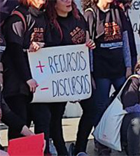 Infograma us comparteix el text íntegre del document que dos representants d’aquesta reivindicació van llegir en veu alta a l’alcaldessa i regidores i regidors. Resulta il·lustrador de la seva situació que els treballadors i treballadores municipals vestissin una samarreta negra on es podia llegir “S.O.S. SERVEIS SOCIALS SANTAKO. TREBALLEM PER A LES PERSONES” i pengessin pancartes a la façana municipal. També que el crit més freqüent en el megàfon fos la seva voluntat de poder treballar i de manera digna.
